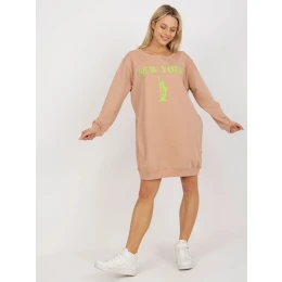 Béžovo-zelená dámská dlouhá bavlněná mikina s potiskem.
