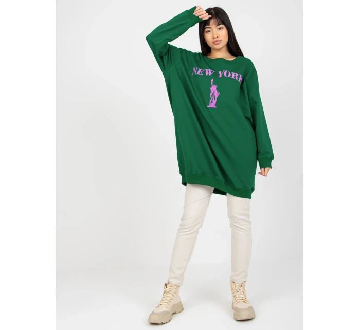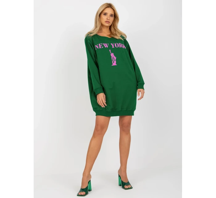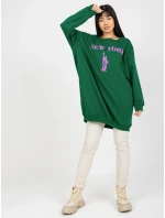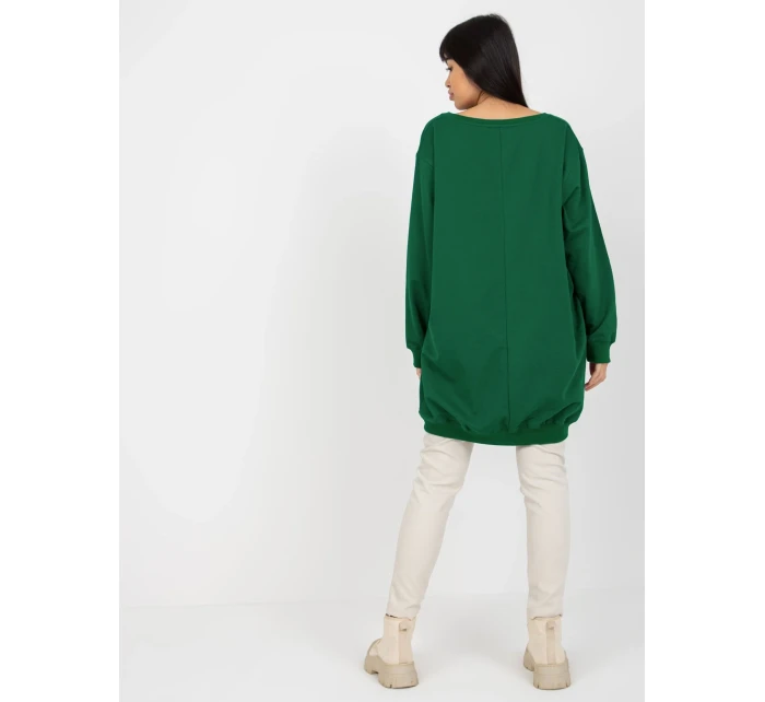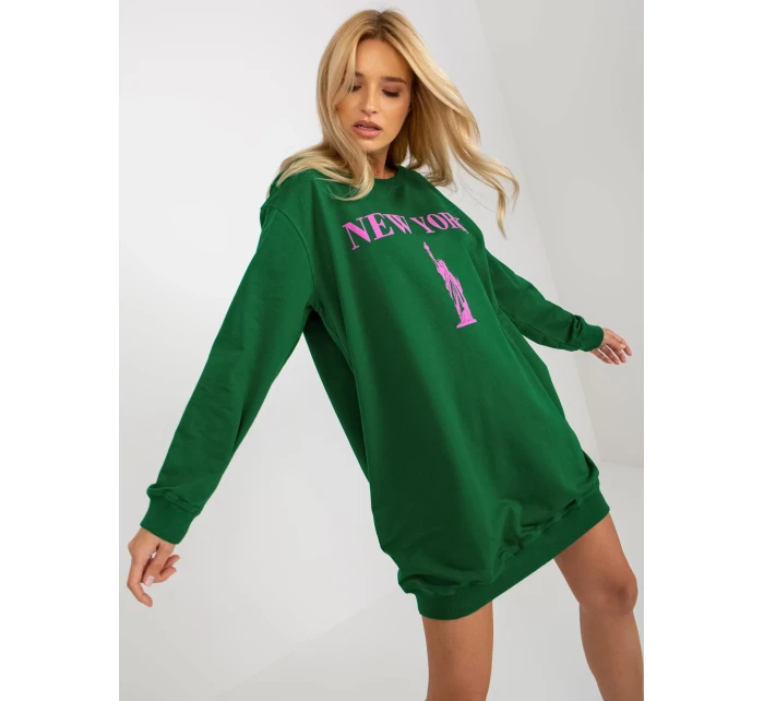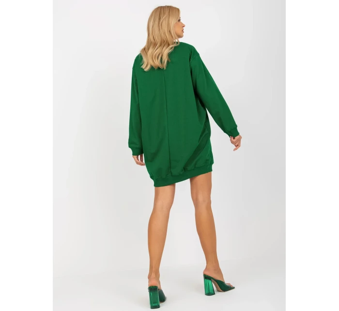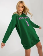Tmavě zeleno-zelená dlouhá oversize mikina s nápisem .