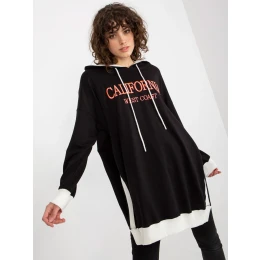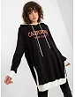 Černá dlouhá oversize mikina s nápisy a kapucí .