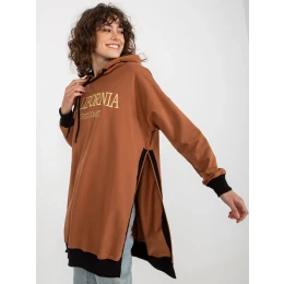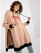 Světle hnědá dlouhá mikina s kapucí a rozparky .