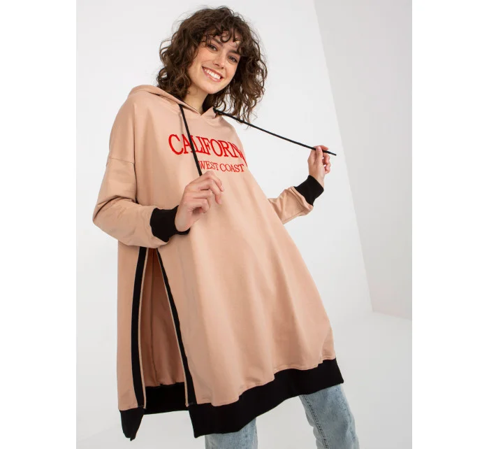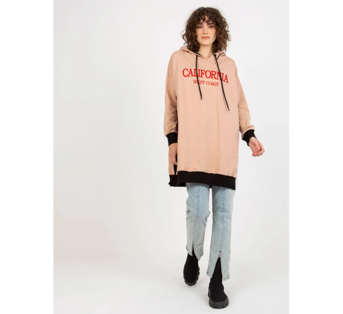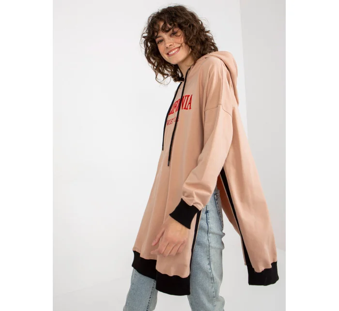Béžová dlouhá oversize mikina s kapucí a nápisem .