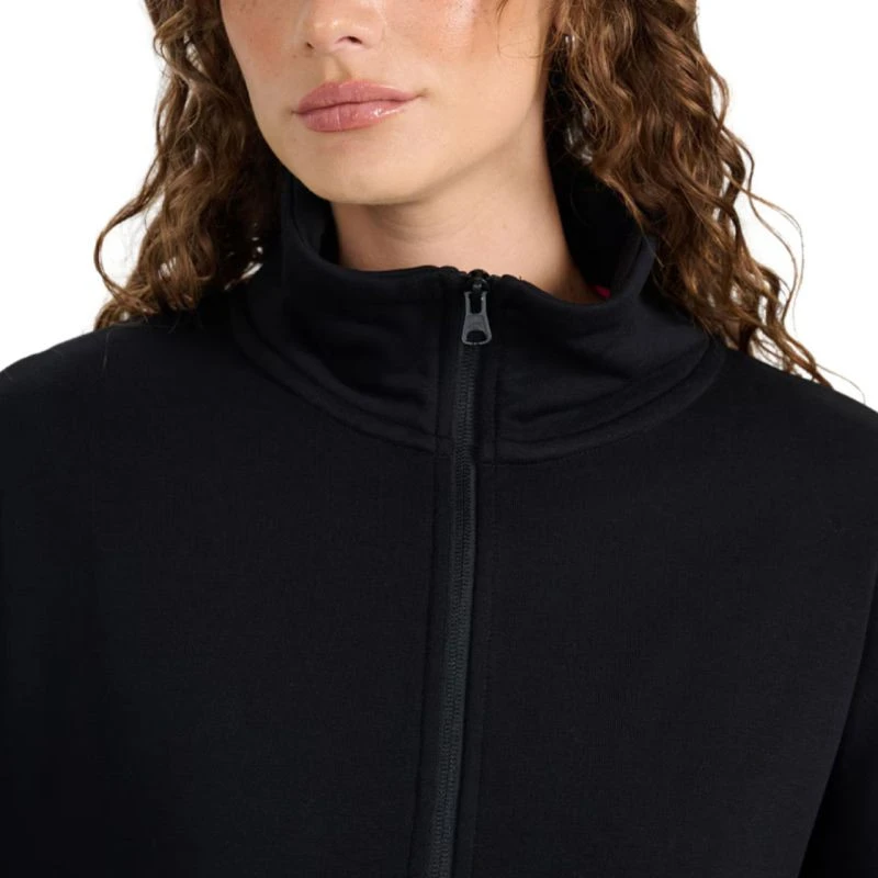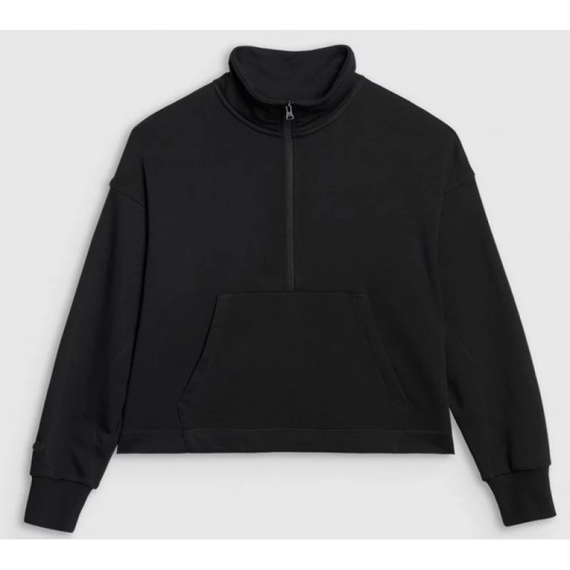Gramatura 330 gsm - solidna grubość materiału zapewniająca trwałość i komfort noszenia· Wnętrze bez podszycia - lżejsza konstrukcja zapewniająca komfort użytkowania· Krój oversize - luźno układa się na sylwetce i zapewnia swobodę ruchu· Długość do bioder - klasyczna, uniwersalna długość· Wykonana w przeważającej części z bawełny - miękka, trwała i przyjemna w dotyku· Dodatek poliestru - zwiększa wytrzymałość materiału i odporność na zużycie· Jednolita kolorystyka - łatwa do zestawienia z innymi elementami garderoby· Dzianina dresowa french terry - gładka na zewnątrz, z pętelkowym splotem wewnątrz dla lepszej wentylacji· Dekolt ze stójką i zamkiem - dodatkowa ochrona szyi i możliwość regulacji rozpięcia· Mankiety ze ściągaczem - utrzymują rękawy na właściwym miejscu· Kieszeń kangurka z przodu - wygodne miejsce na dłonie i drobiazgi· Wkładana przez głowę - proste i szybkie zakładanie· Obniżona linia ramion – podkreśla swobodny charakte