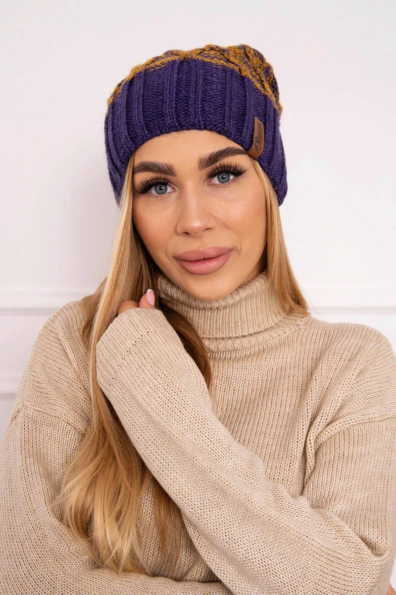 Milano fleecová čepice K203 hořčicová melange+tmavě fialová