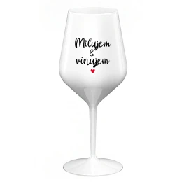 MILUJEM & VÍNUJEM - biely nerozbitný pohár na víno 470 ml