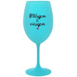 MILUJEM & VÍNUJEM - tyrkysový pohár na víno 350 ml