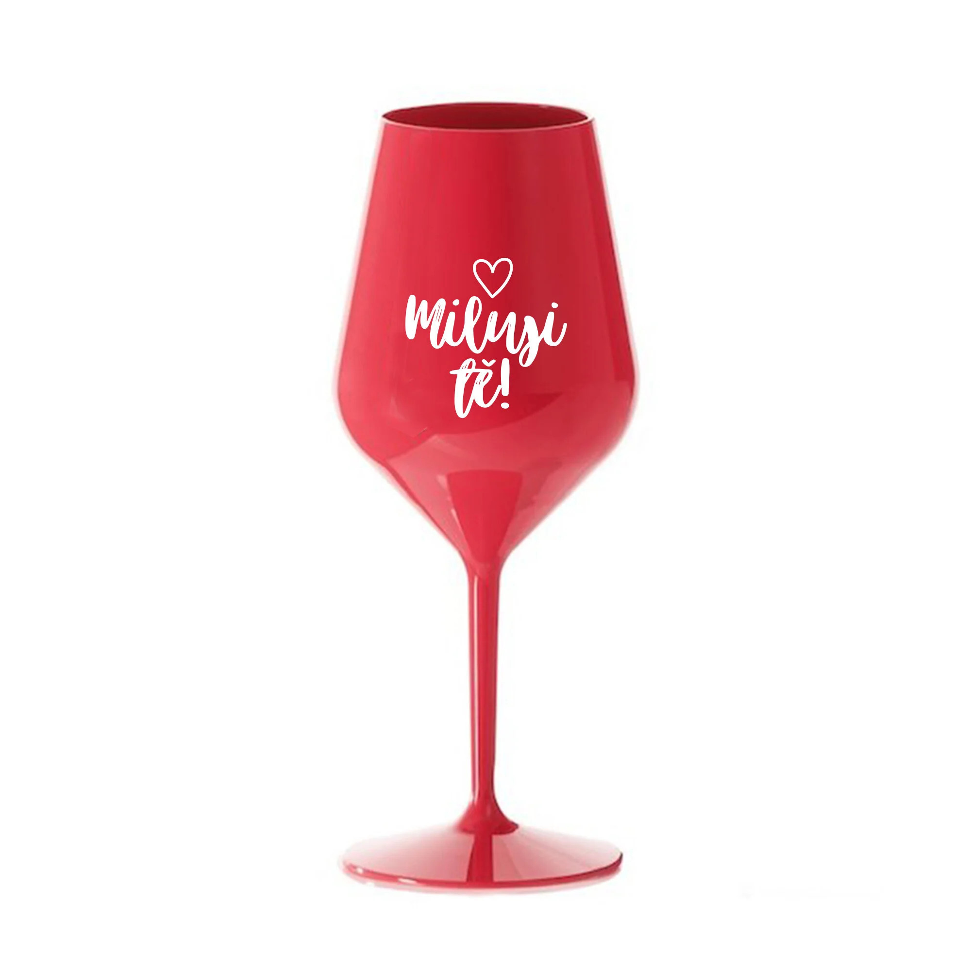 MILUJI TĚ! (SRDÍČKO) - červená nerozbitná sklenice na víno 470 ml