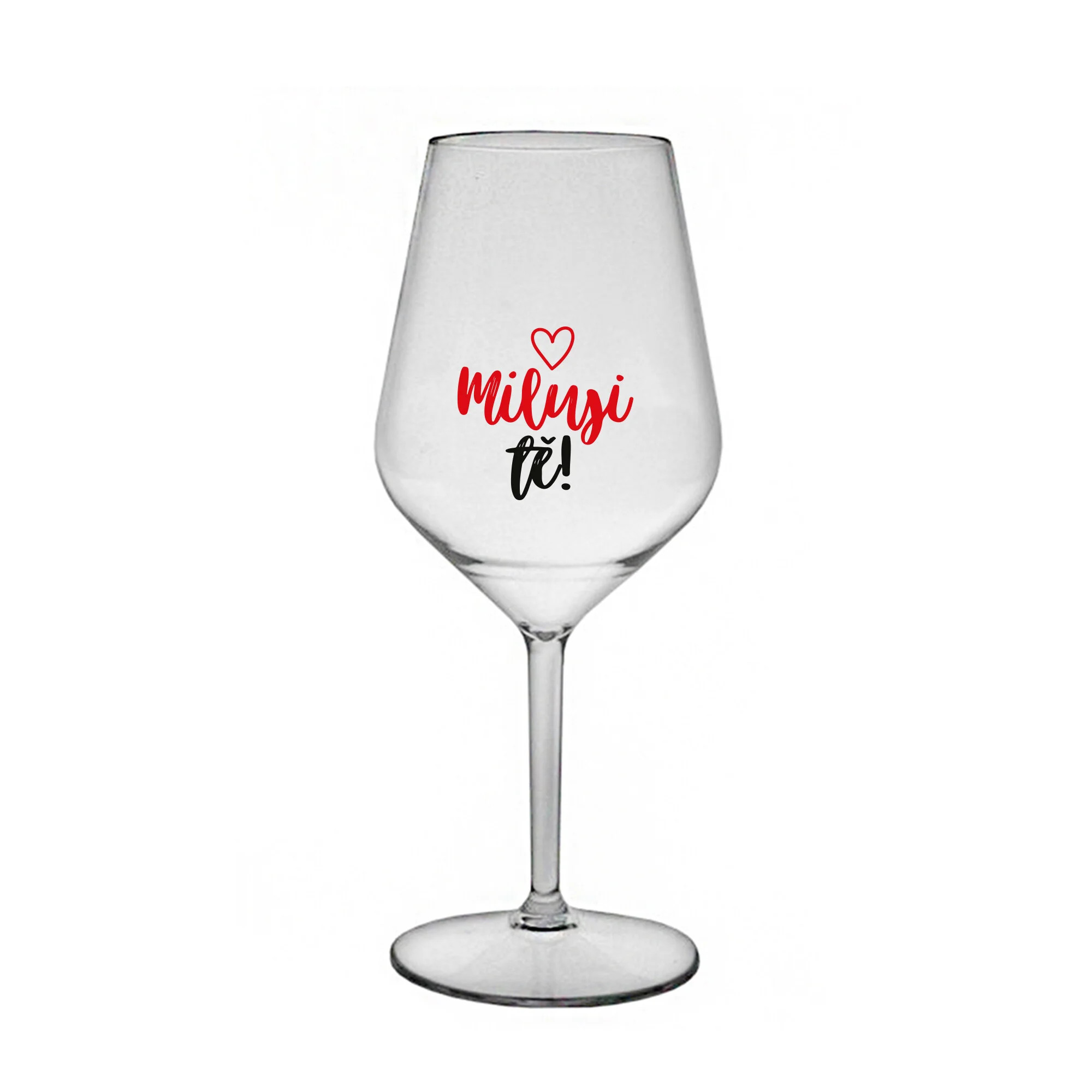 MILUJI TĚ! (SRDÍČKO) - čirá nerozbitná sklenice na víno 470 ml