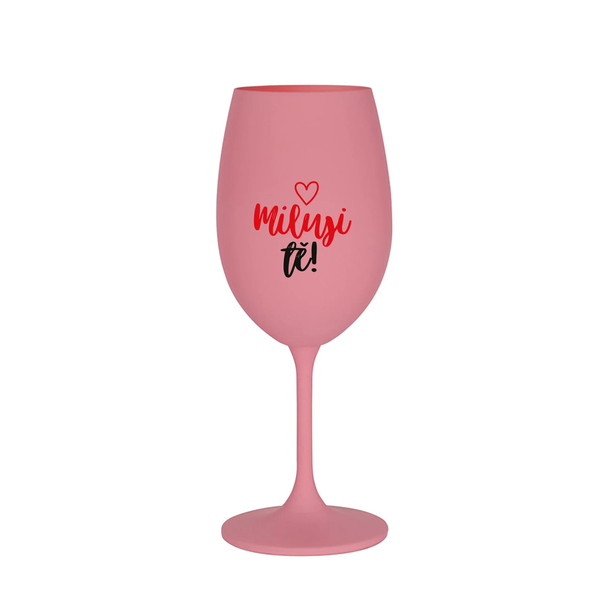 MILUJI TĚ! (SRDÍČKO) - růžová sklenice na víno 350 ml