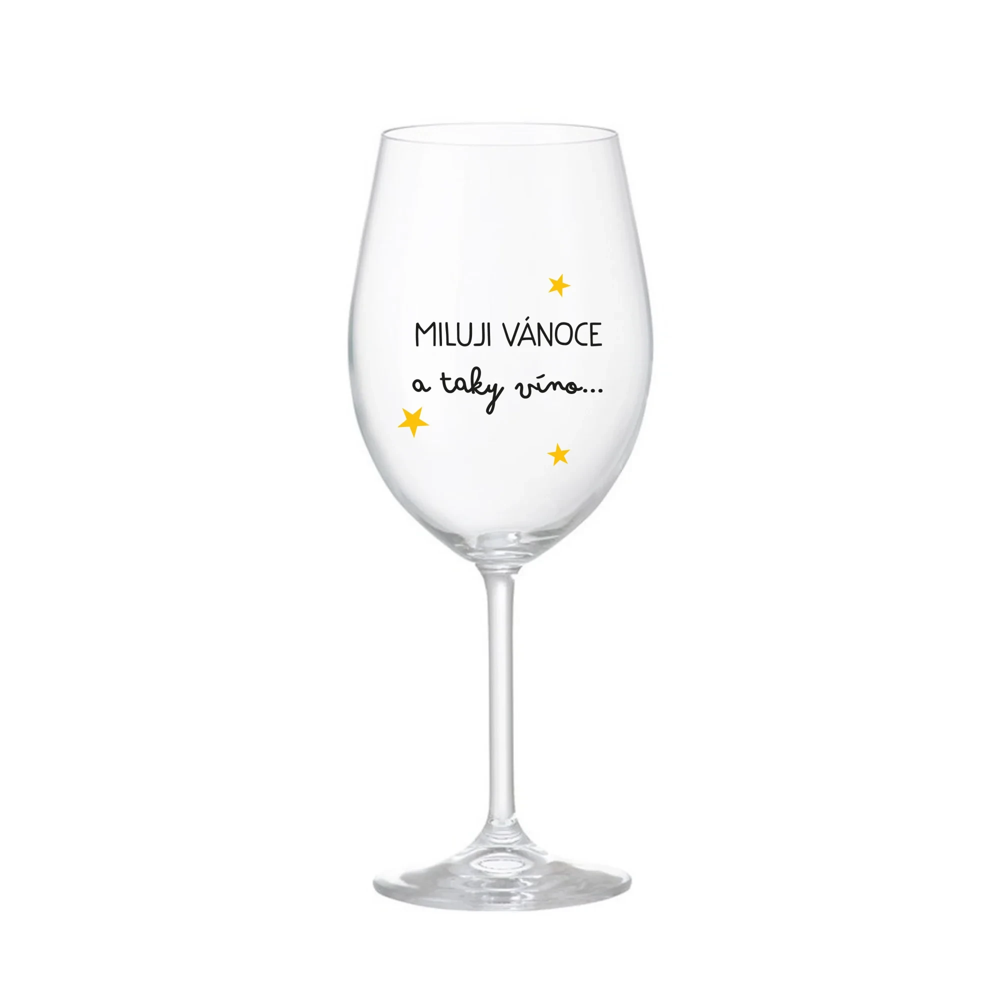 MILUJI VÁNOCE A TAKY VÍNO - čirá sklenice na víno 350 ml