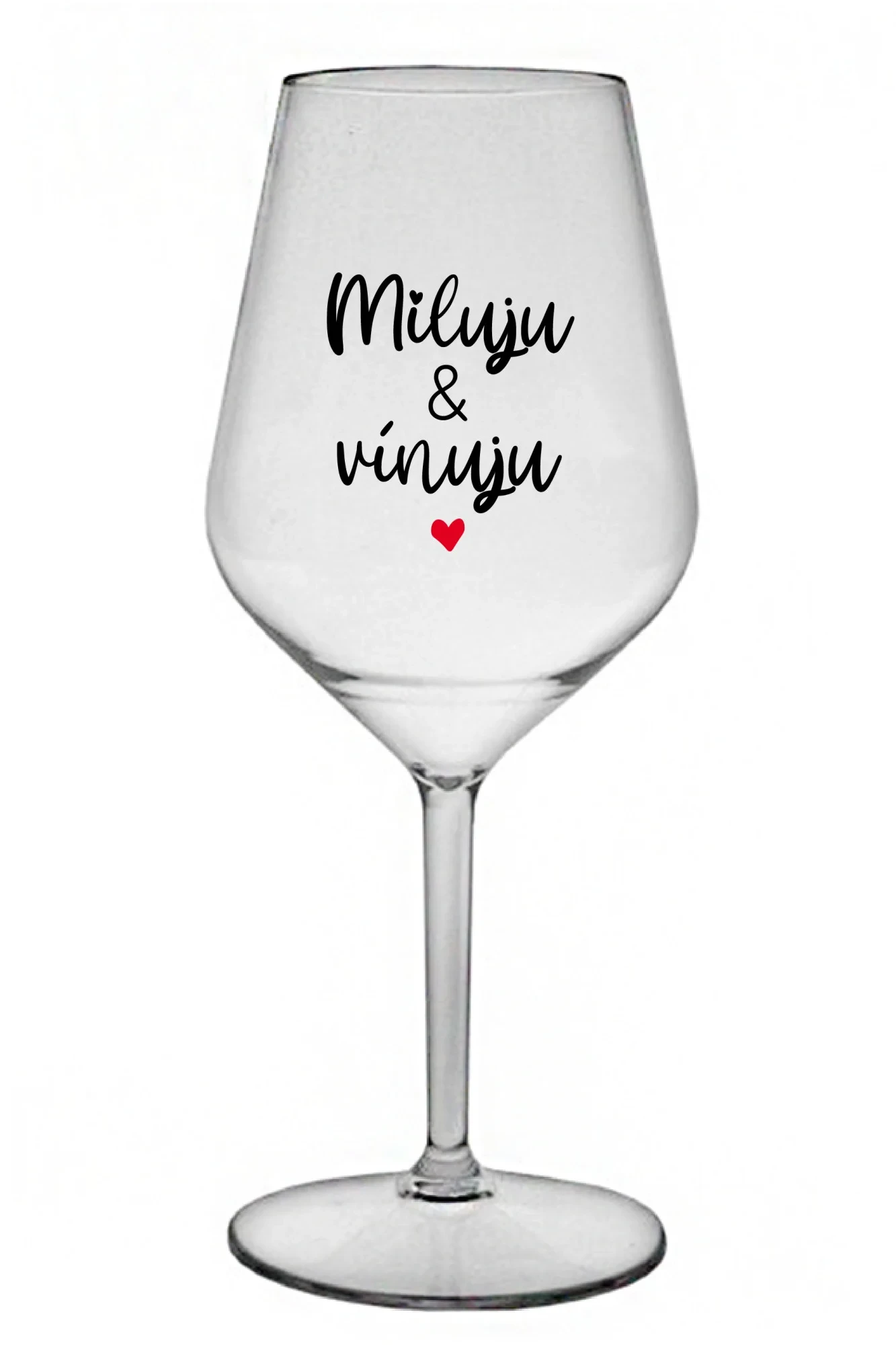 MILUJU & VÍNUJU - čirá nerozbitná sklenice na víno 470 ml