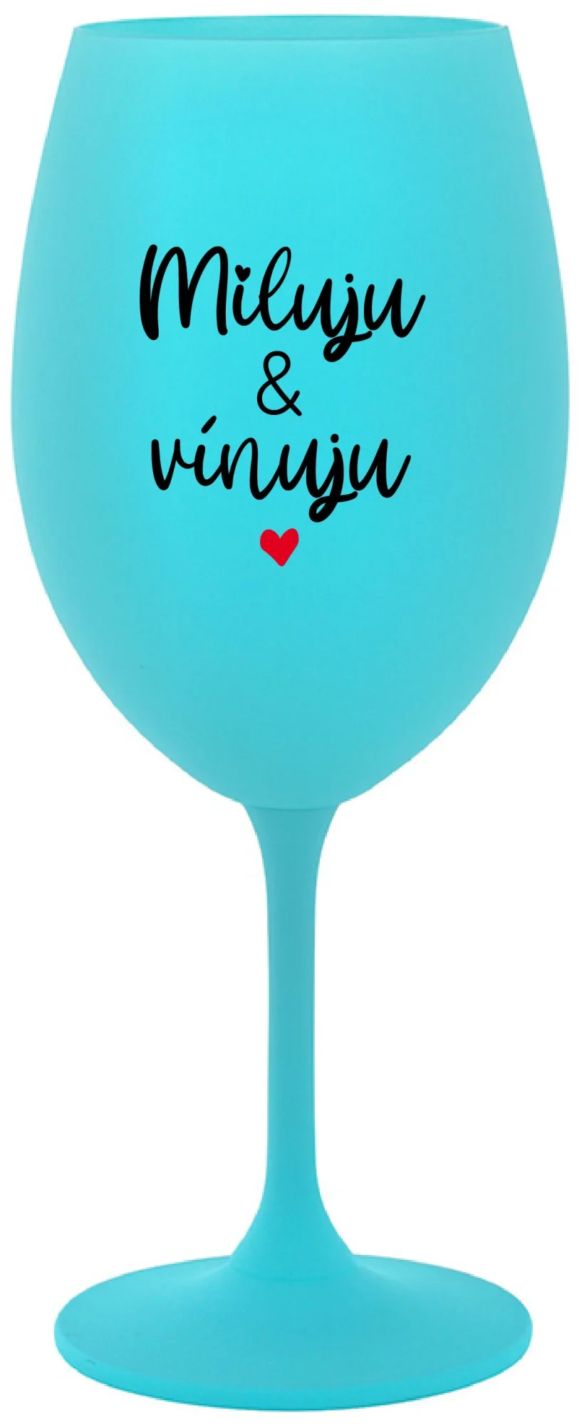 MILUJU & VÍNUJU - tyrkysová sklenice na víno 350 ml