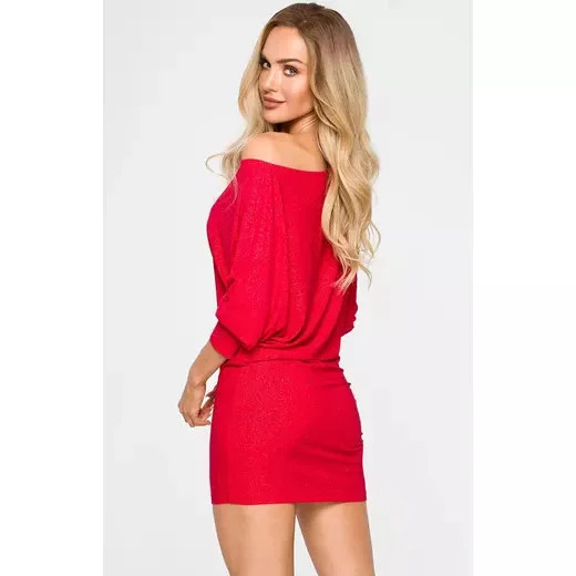 Šaty s mnoha kombinacemi. Úplet s třpytkami mini šaty s netopýřím topem a střihem na ramenou přetažené přes hlavu přiléhavý lem bez podšívky.. Naše modelka je vysoká 171 cm a nosí velikost S