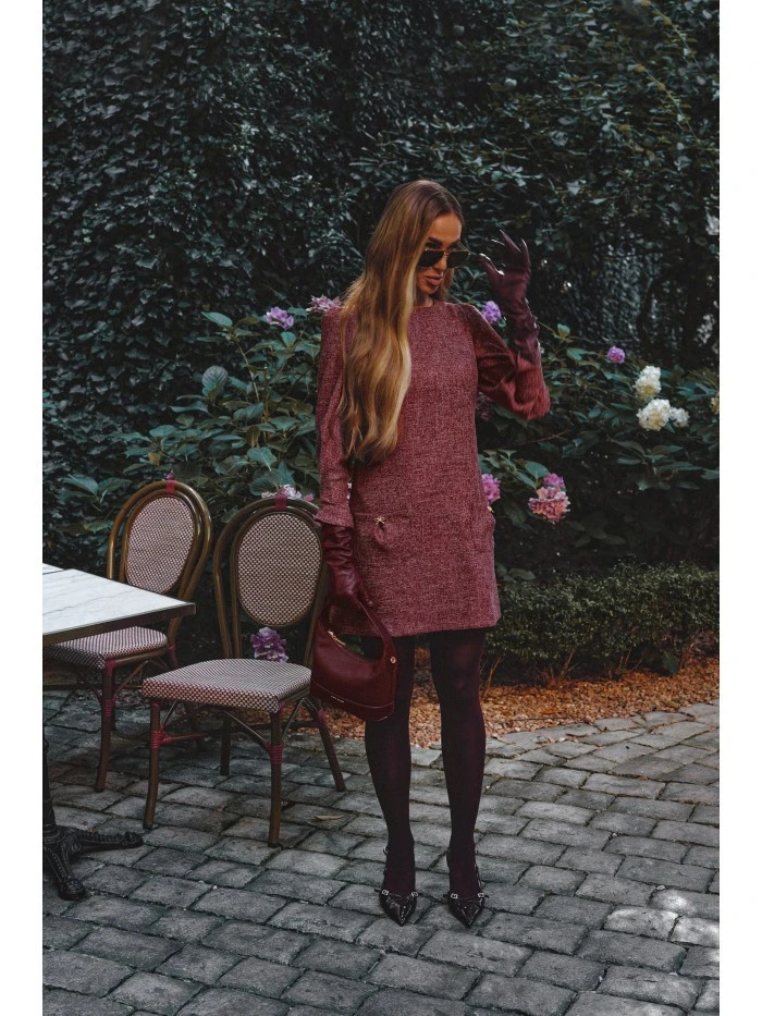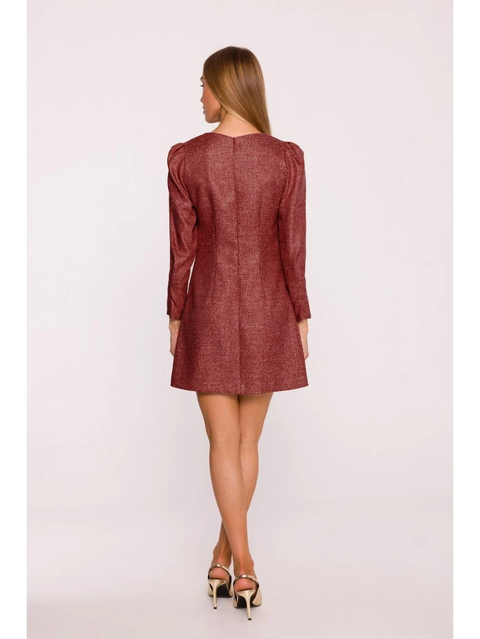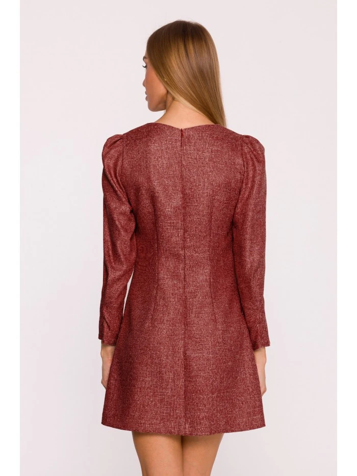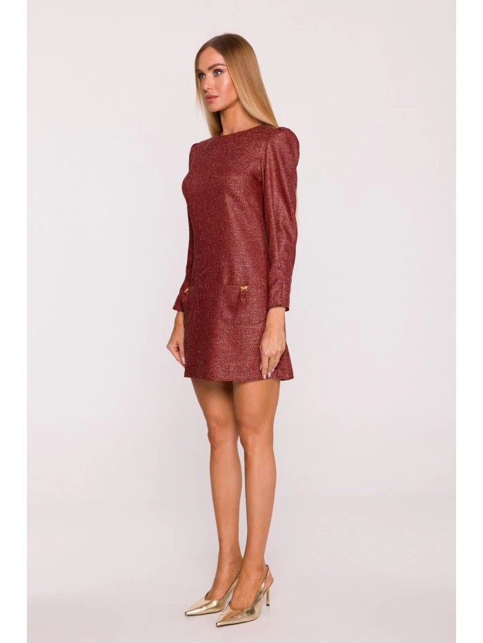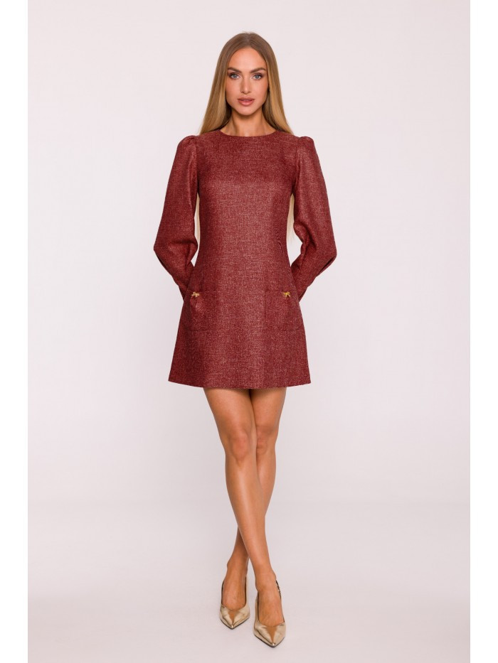 materiál: Tkanina Tweed PODROBNOSTI O VÝROBKU Výstřih: Lodičkový výstřih Rukávy: Dlouhé, nabírané na ramenou a se záševky na manžetách Zapínání: Skrytý zip na zádech Kapsy: Kapsy s ozdobnými mašlemi ve stylu šperků Podšívka: Žádná Vzor: Mélange Model: M870Navrženo a vyrobeno v Polsku Modelka na fotografii měří 171 cm a má na sobě velikost S Střih a střih Střih: áčkový Tvar: Mírně vypasovaný na ramenou, volný na bocích Délka: Mini