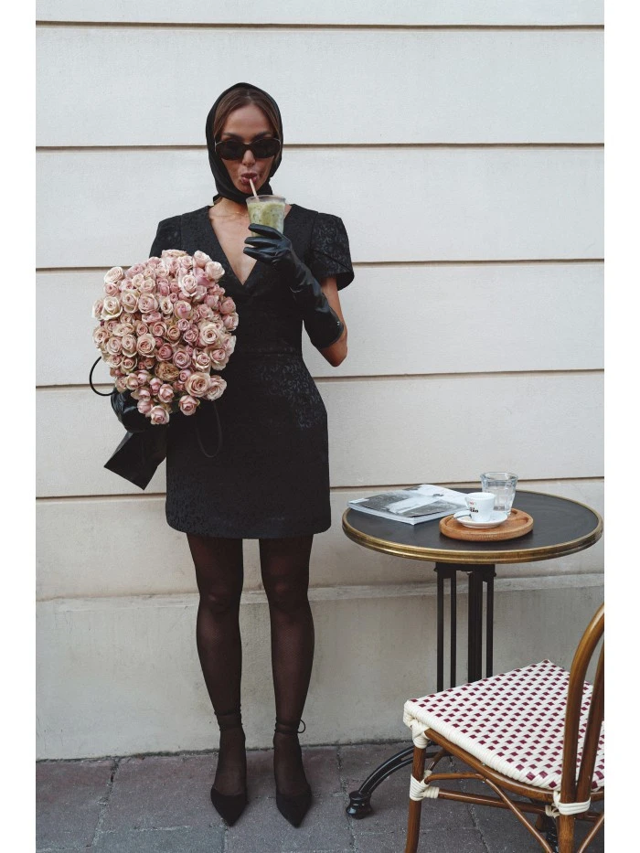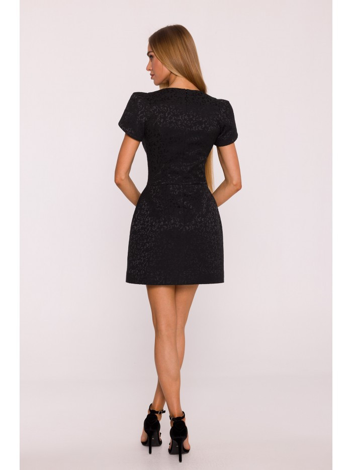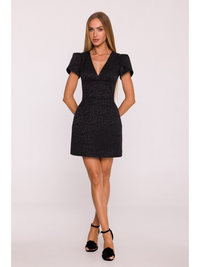HLAVNÍ LÁTKA: 50% bavlna 47% polyester 3% elastan PODŠÍVKA: 100% polyester MATERIÁL Látka: žakárová tkanina s botanickým vzorem. PODROBNOSTI O PRODUKTU Výstřih: hluboký výstřih do V Rukávy: krátké s elegantními záhyby na ramenou Zapínání: skrytý zip na zádech Kapsy: žádné Podšívka: žádná Vzor: žakár Model: M882 Navrženo a vyrobeno v Polsku Modelka na fotografii měří 171 cm a má na sobě velikost S STŘIH A VÝSTŘIH Střih: tělový Tvar: přesýpací hodiny s výrazně ohraničeným pasem Délka: mini