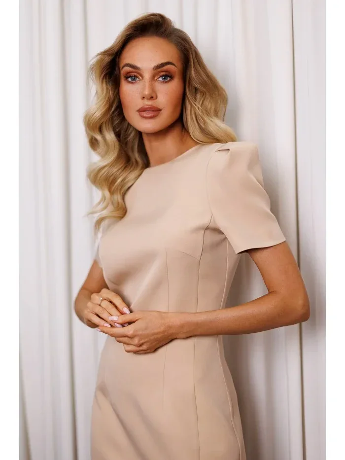 Mini šaty s na ramenou béžové model 19660644 - Moe
