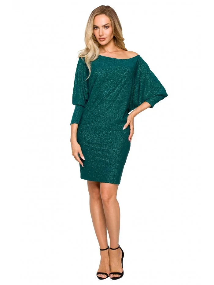 Mini šaty se spadlými rameny M723 smaragdové - MOE