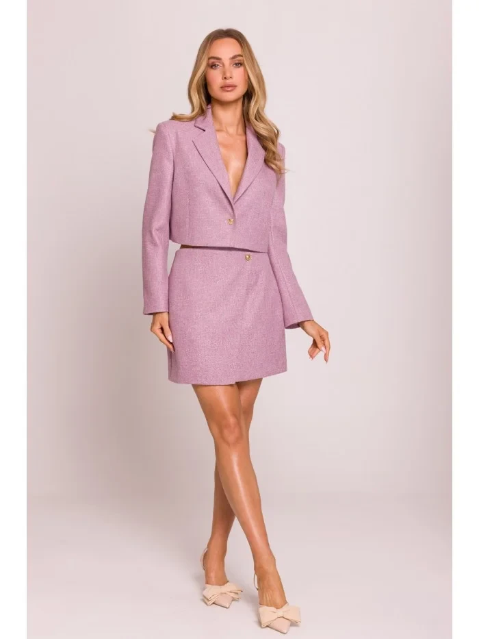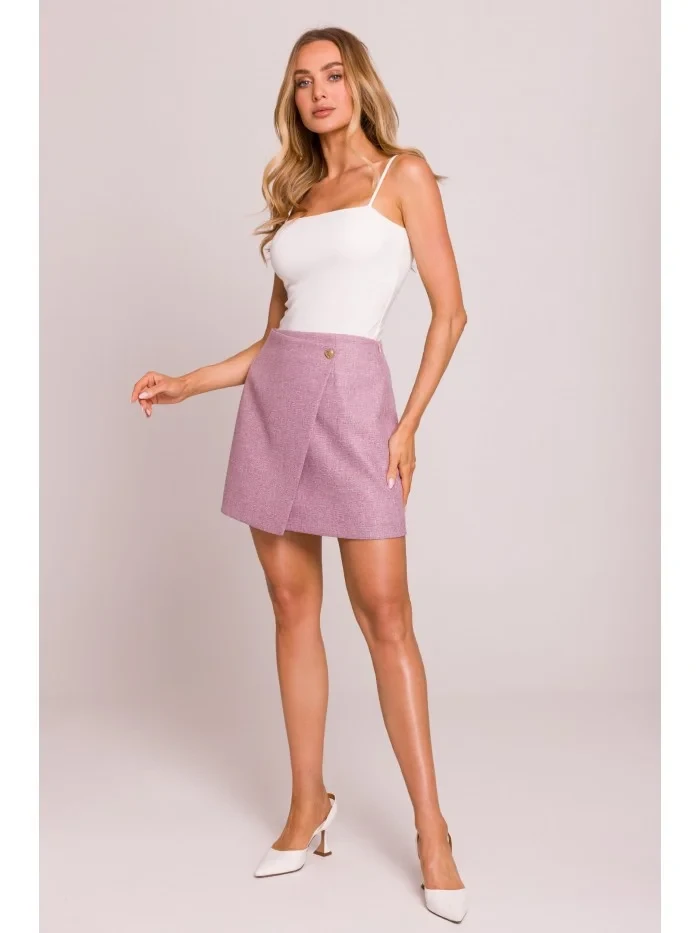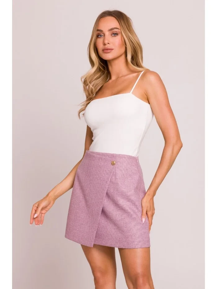 70 % polyester 27 % rayon 3 % spandex INFORMACE O PRODUKTU: mini sukně z tkané látky faux wrap design s jediným knoflíkem ve tvaru srdce skryté zapínání na boční zip podšitá naše modelka měří 171 cm a nosí velikost S navrženo a vyrobeno v Polsku