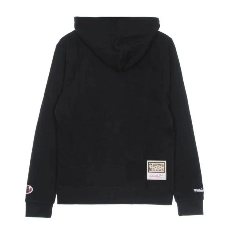 Na zadním štítku jsou vyšita loga Hardwood Classics, NBA a Mitchell & Ness, což mikině dodává elegantní a oficiální nádech.