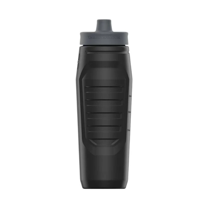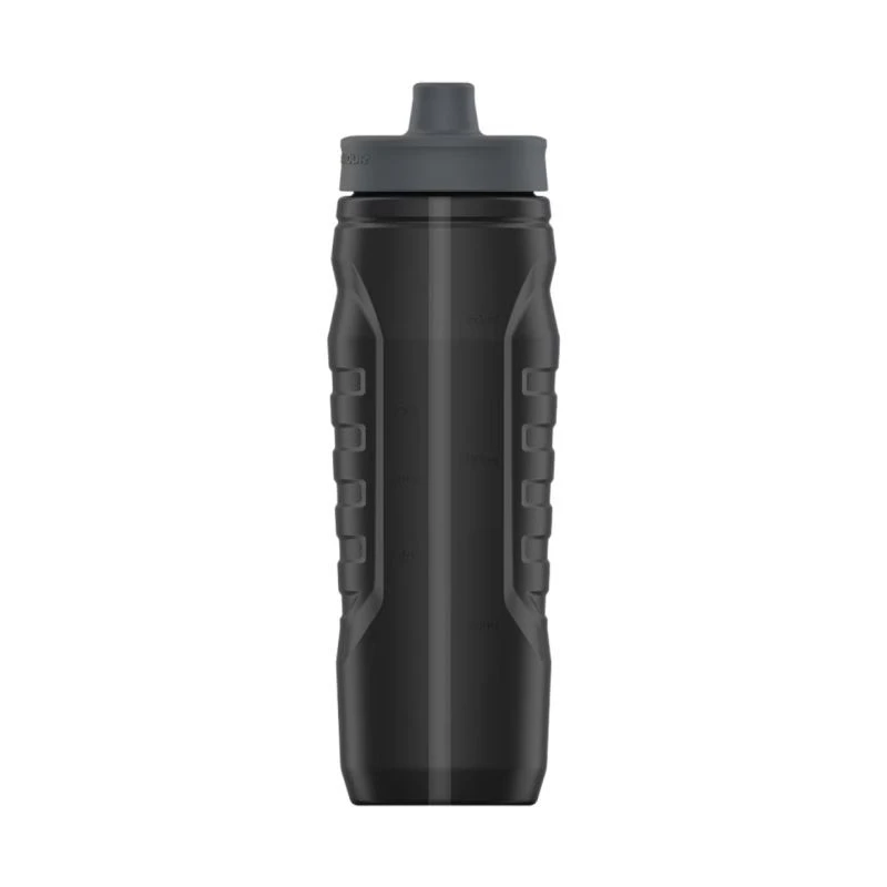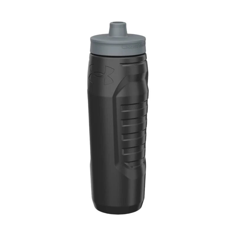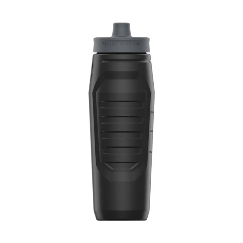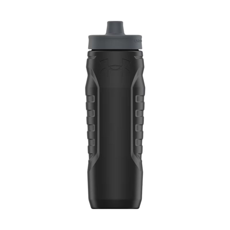 Bidon Under Armour Sideline Squeeze 950 ml czarny UA70090 036 Bidon sportowy Under Armour pozwoli zbadać o prawidłowe nawodnienie organizmu. Dane techniczne:· Pojemność 950 ml· Ergonomiczny ustnik· Miarka w uncjach i mililitrach· Pokrywa z zaworem jednokierunkowym, dzięki czemu możesz szybko się nawodnić, nawet w podróży· Zastosowane materiały nie zawierają BPA i ołowiu· Materiały: pokrywka z polipropylenu, pierścień silikonowy, dysza silikonowa, korpus z HDPE