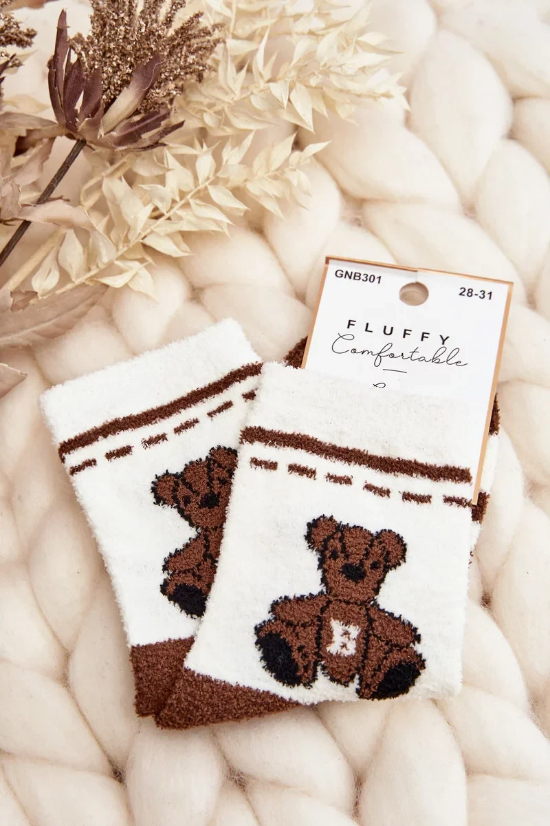 Mládežnické teplé ponožky s medvídkem, bílé a hnědé