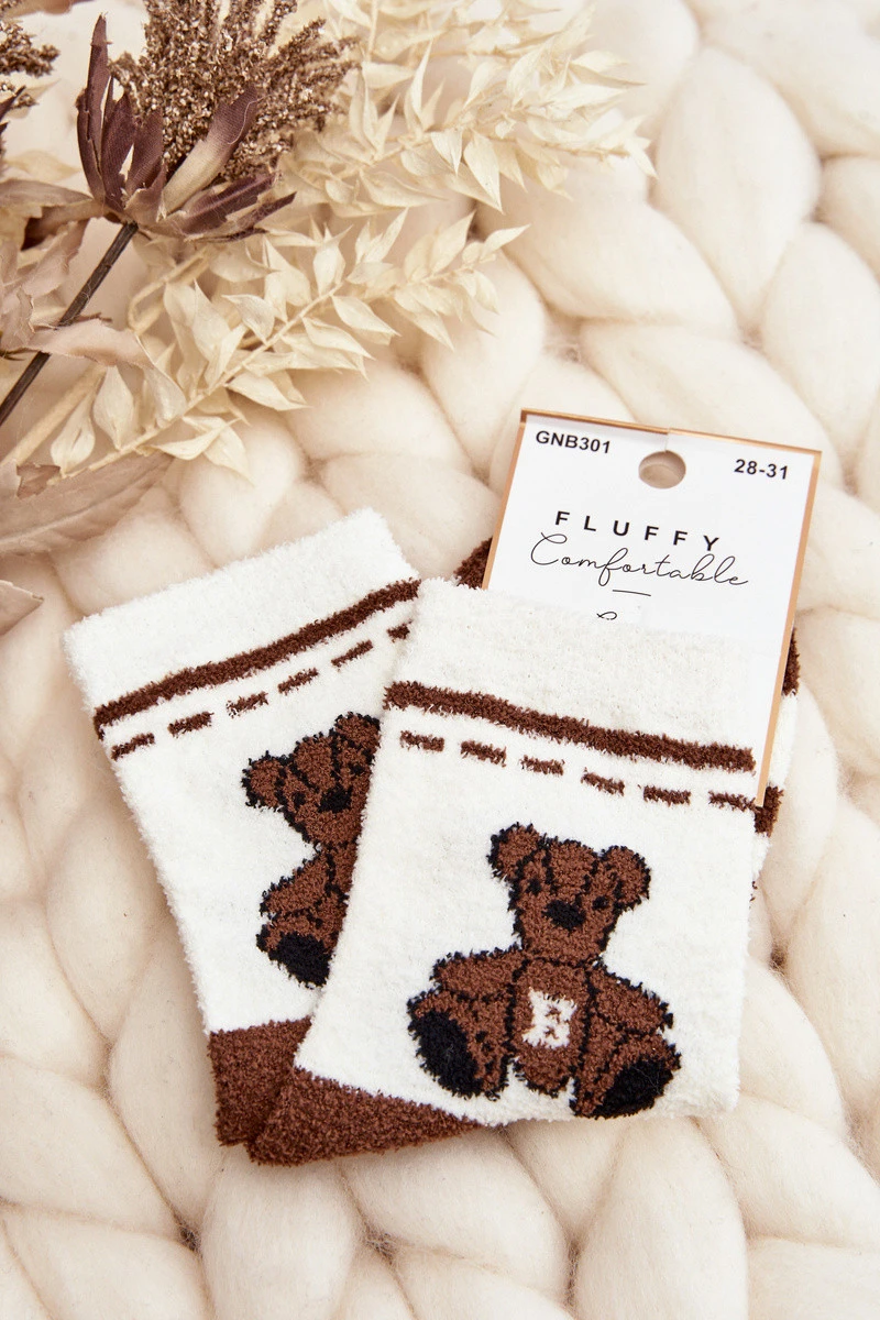 Mladistvé Teplé Ponožky S Medvědem Bílo-Hnědé