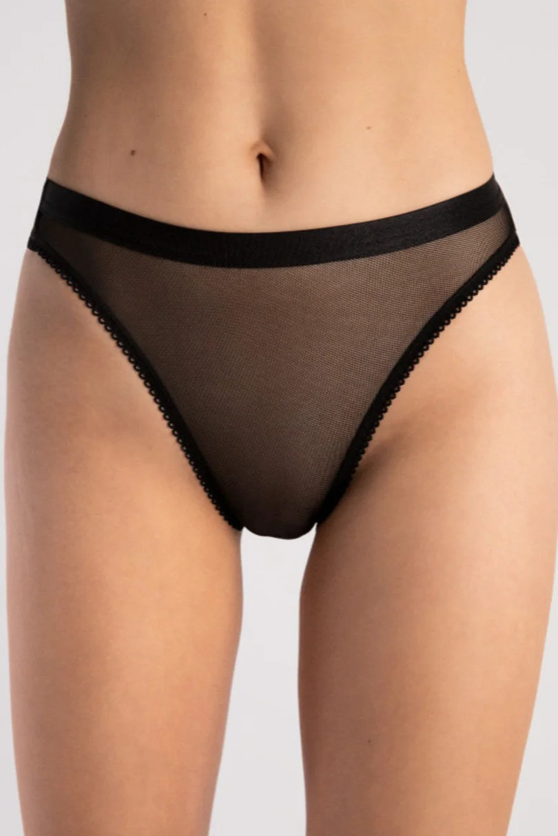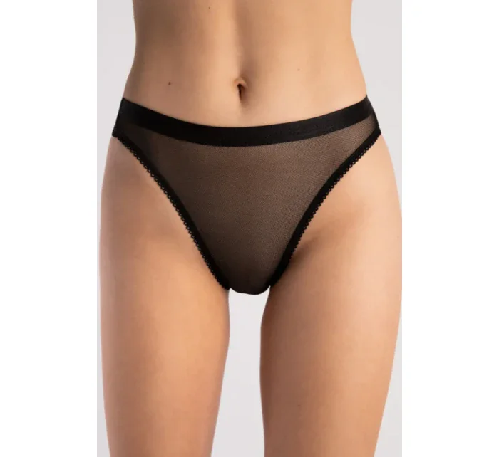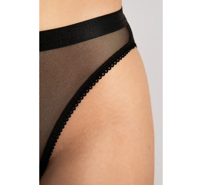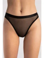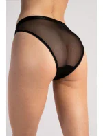 Klasické kalhotky z béžového tylu, na bocích je béžová síťovina, na které je našitá krajka.