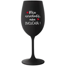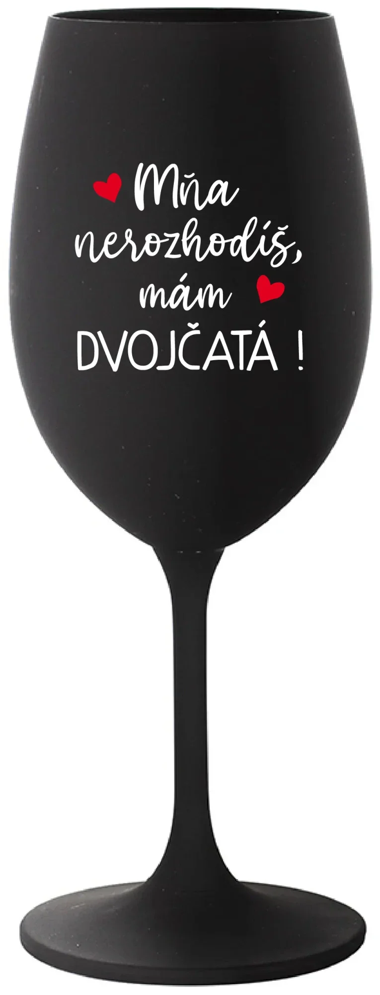 MŇA NEROZHODÍŠ, MÁM DVOJČATÁ! - čierny pohár na víno 350 ml