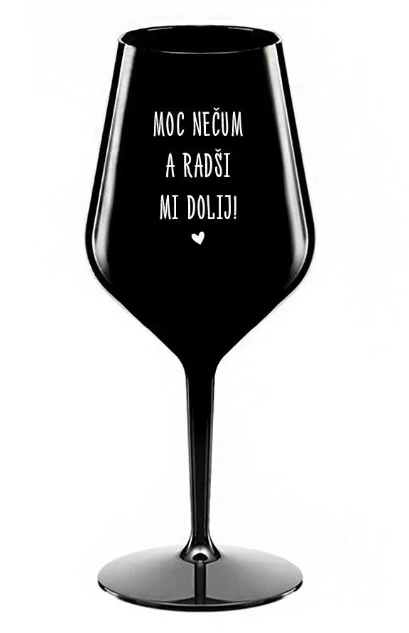 MOC NEČUM A RADŠI MI DOLIJ! - černá nerozbitná sklenice na víno 470 ml