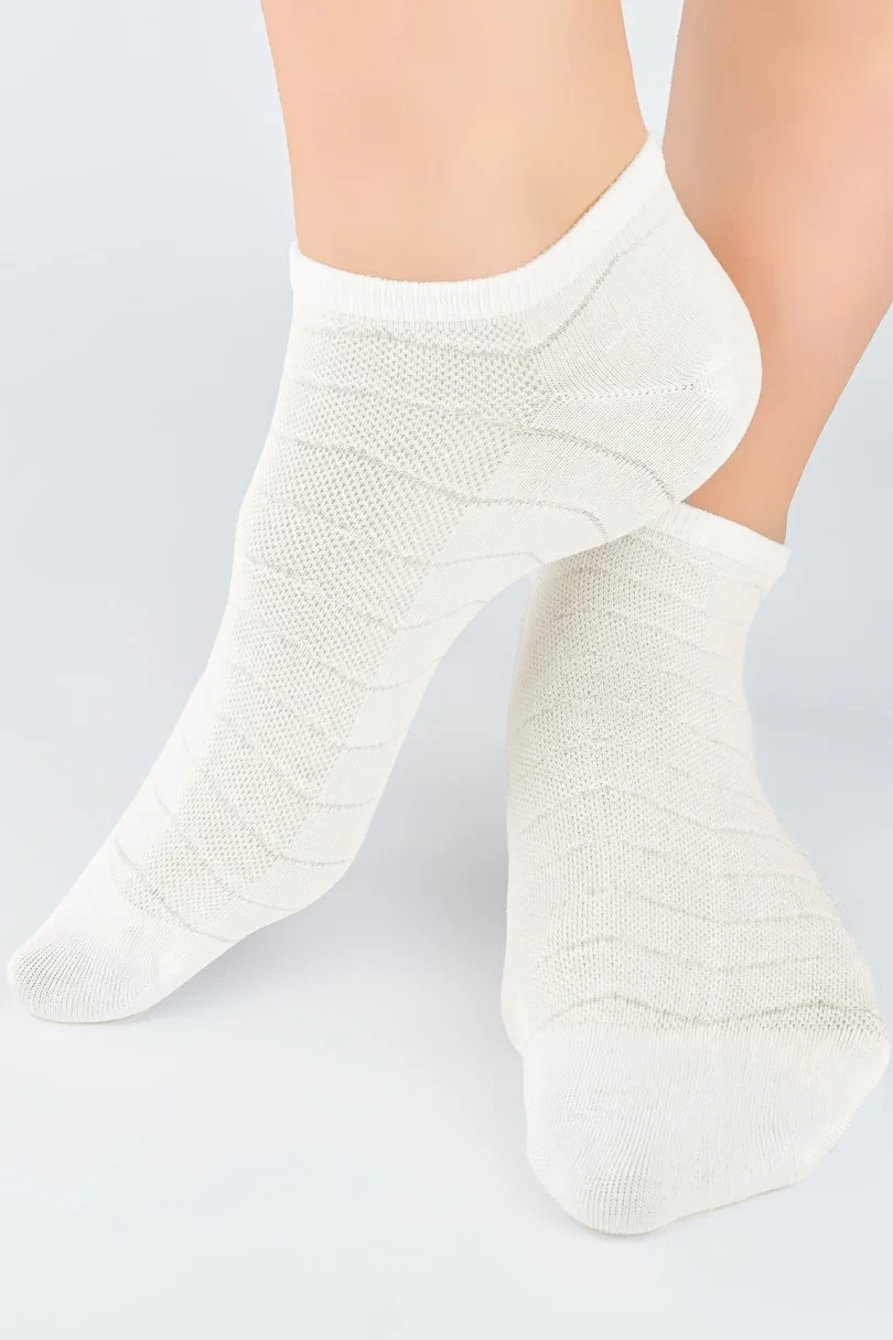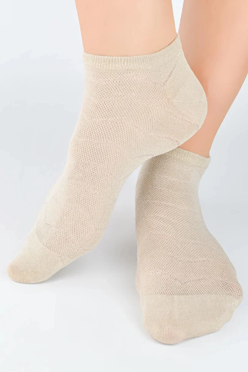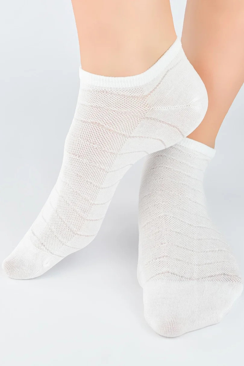 Ponožky NOVITI ST046 jsou spojením elegance a pohodlí. Jsou vyrobeny z vysoce kvalitního modalu a poskytují výjimečnou měkkost a prodyšnost. Ažurový vzor jim dodává jemný půvab, zatímco ploché švy zaručují pohodlí po celý den. Díky pružnému střihu ponožky dokonale sedí na noze, nekloužou a umožňují pokožce dýchat.