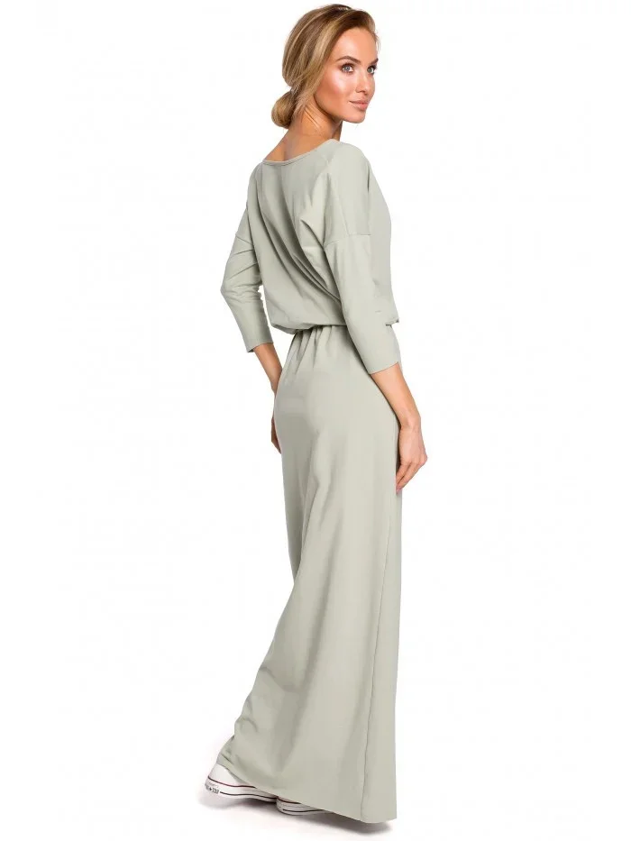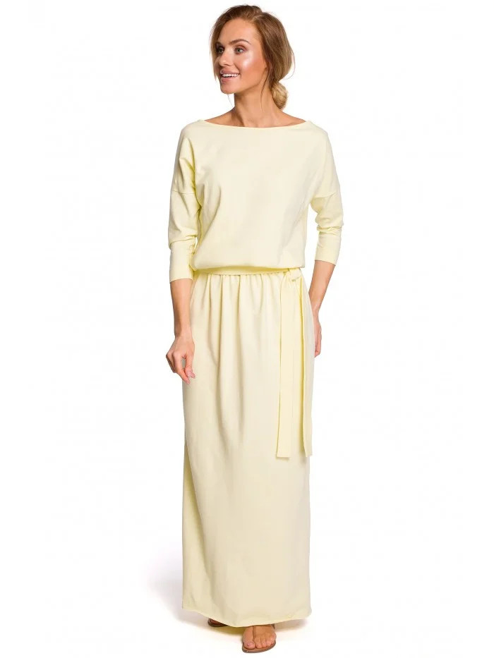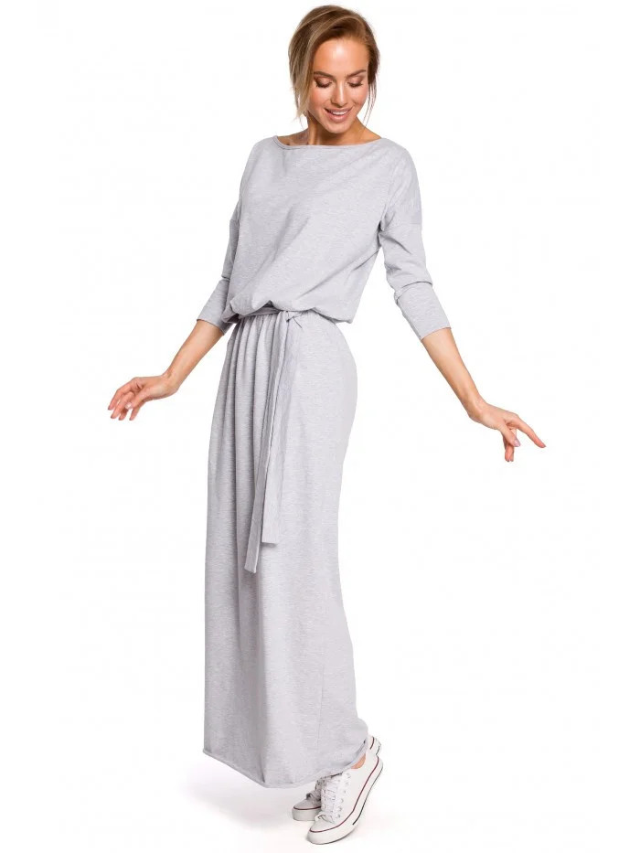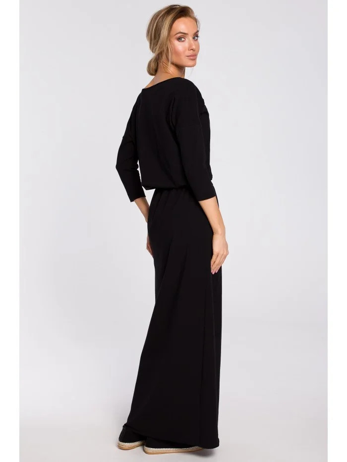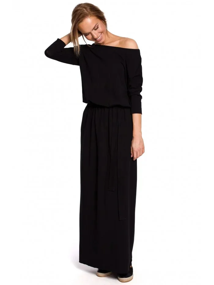 model 15100179 Maxi bavlněné šaty s páskem na zavazování černé - Moe
