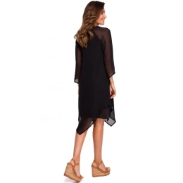 model 15100318 Šifonové šaty s asymetrickým lemem tmavě modré - STYLOVE