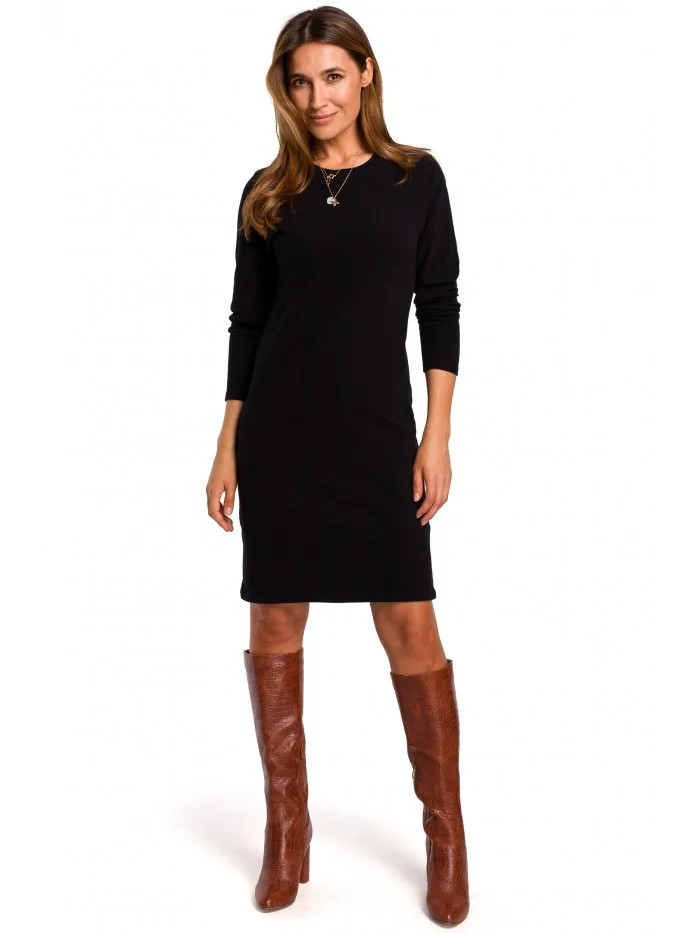model 15100817 Svetrové šaty s dlouhým rukávem černé - STYLOVE