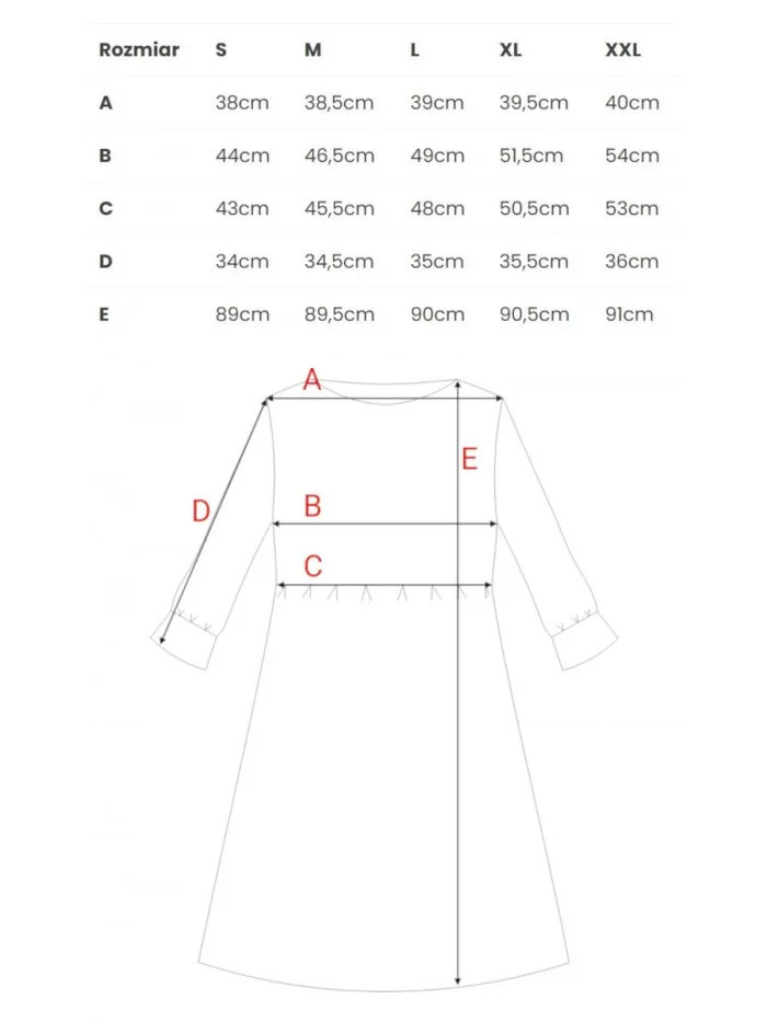 | Délka rukávu (vnitřní) | 34cm | 34,5cm | 35cm | 35,5cm | 36cm |