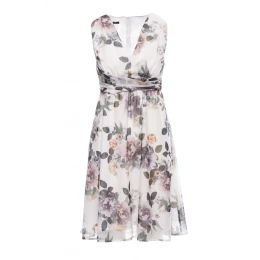 - 100% polyester Tyto elegantní šaty jsou vyrobeny z lehkého pruhovaného šifonu s květinovým potiskem, mají hluboký výstřih do V a ozdobný nabíraný pásek. PODROBNOSTI O PRODUKTU: tkaná látka - potištěný šifon šaty bez rukávů střih s hlubokým výstřihem do V ozdobný pásek zavinutý uprostřed skrytý zip délka ke kolenům plně podšité Naše modelka měří 166 cm a nosí velikost S