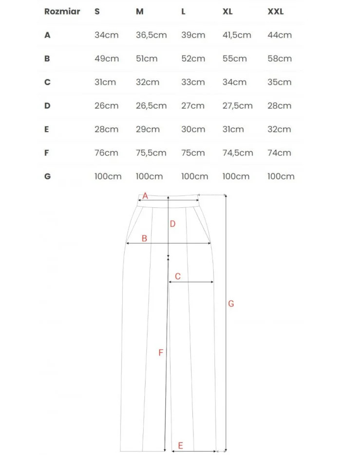 | VNITŘNÍ DÉLKA NOHAVICE | 76cm | 75,5cm | 75cm | 74,5cm | 74cm |