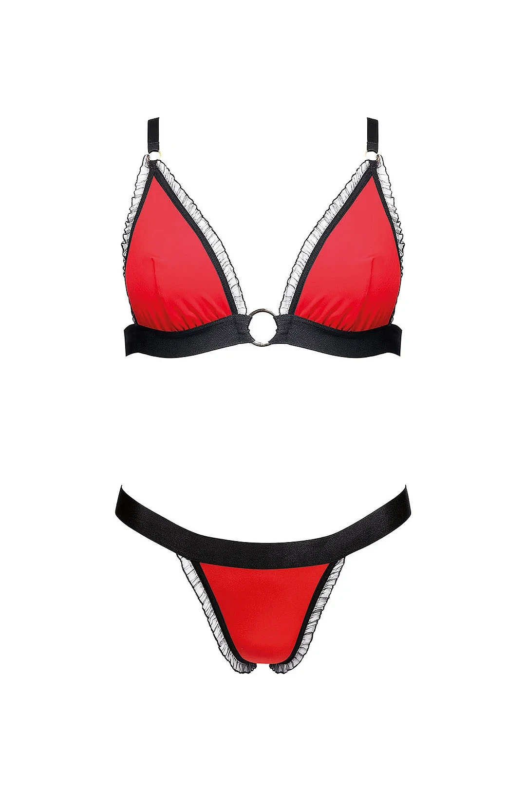 Ano, černá + červená je vždy dobrou volbou, pokud jde o smyslné spodní prádlo, a když k tomu přidáte módní široké ploché gumičky, jemný tyl a sexy střih - máte komplet, který elektrizuje jeho smysly. Zvolte praktičnost v sexy prostředí - podprsenku a tanga. Měkké košíčky s ozdobou uprostřed, ramínka v moderním stylu, vzadu ve tvaru V. Spodní část je nádherně zvýrazněná. To je ono! Složení: 80 % polyamid, 20 % elastan.EAN čárové kódy zboží jsou: