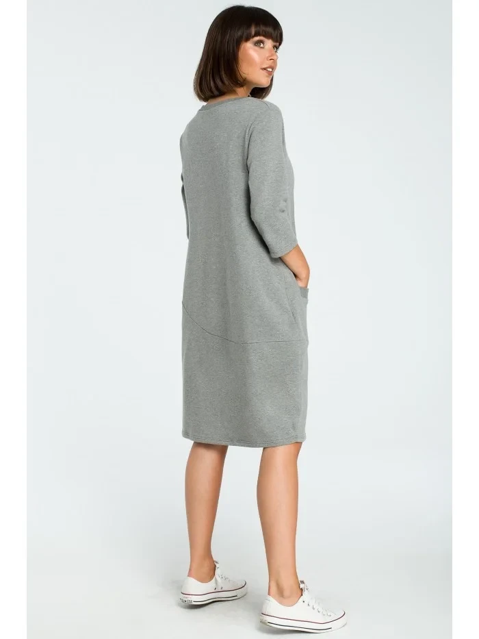 model 18001831 Oversized šaty s přední kapsou šedé - BeWear
