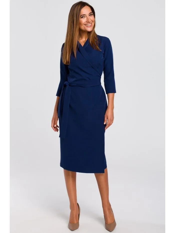 model 18002173 Zavinovací šaty s vázáním tmavě modré - STYLOVE