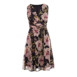 - 100% polyester Tyto elegantní šaty jsou vyrobeny z lehkého pruhovaného šifonu s květinovým potiskem, mají hluboký výstřih do V a ozdobný nabíraný pásek v pase. PODROBNOSTI O PRODUKTU: tkaná látka - potištěný šifon šaty bez rukávů střihu s hlubokým výstřihem do V ozdobný pásek zavinutý uprostřed skrytý zip délka ke kolenům plně podšité naše modelka měří 166 cm a nosí velikost S