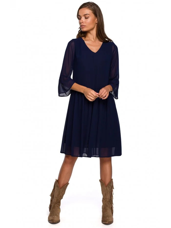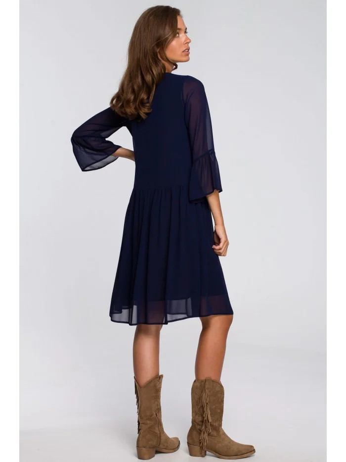 model 18003018 Jednoduché šifonové šaty tmavě modré - STYLOVE