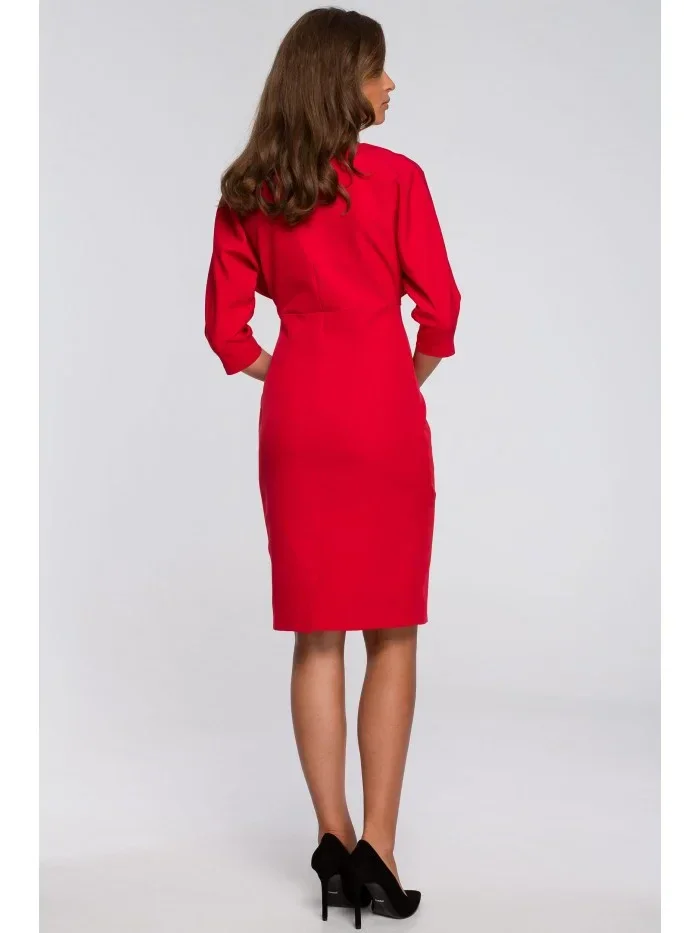 model 18003038 Šaty s netopýřími rukávy červené - STYLOVE