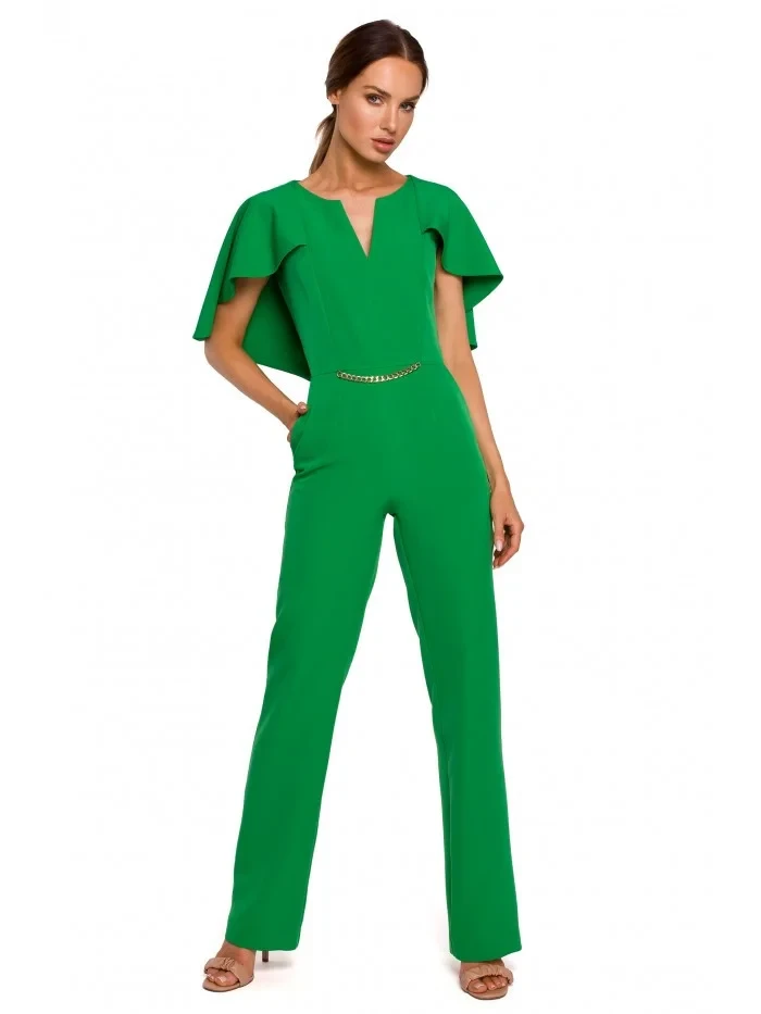 95 % polyester 5 % elastan Tento jednodílný overal s efektem pláštěnky na zádech a řetízkem na přední straně upoutá pozornost. Informace o výrobku: jednodílný overal z tkané látky s kapucí dělený výstřih rovné nohavice ozdobné řetízkové zapínání v pase se skrytým zipem boční kapsy Naše modelka měří 171 cm a nosí velikost S