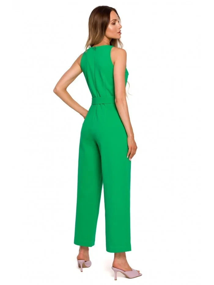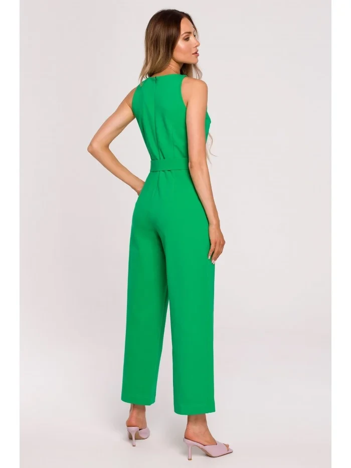 model 18004091 Kombinéza bez rukávů s páskem se sponou zelená - Moe