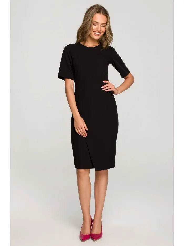 model 18004573 Plášťové šaty s dvojitým předním dílem černé - STYLOVE