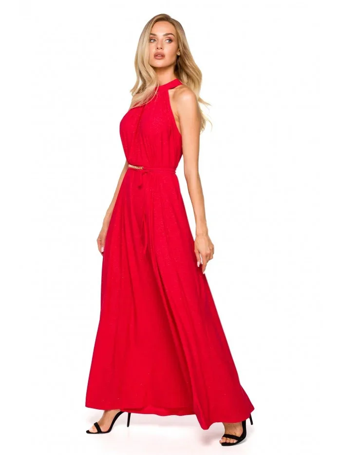 model 18004692 Maxi šaty s výstřihem červené - Moe