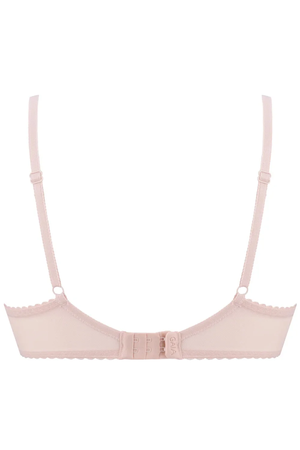Podprsenka Gaia. Model 480 Pilar. Má dráty, které prsa vhodně tvarují. Svislé velrybí kosti zasazené po stranách. Výrobek má nastavitelné popruhy bez možnosti odepnutí. Kovové háčky na popruh. Podprsenka se zapínáním na háčky a oči. Upevňovací bod: vzadu. Dvě řady svislých háčků. Tři stupně horizontálních háčků. Výrobek je vyroben z 57 % z polyamidu, 33 % z polyesteru a 10 % z elastanu. Výrobek pro ženy.
