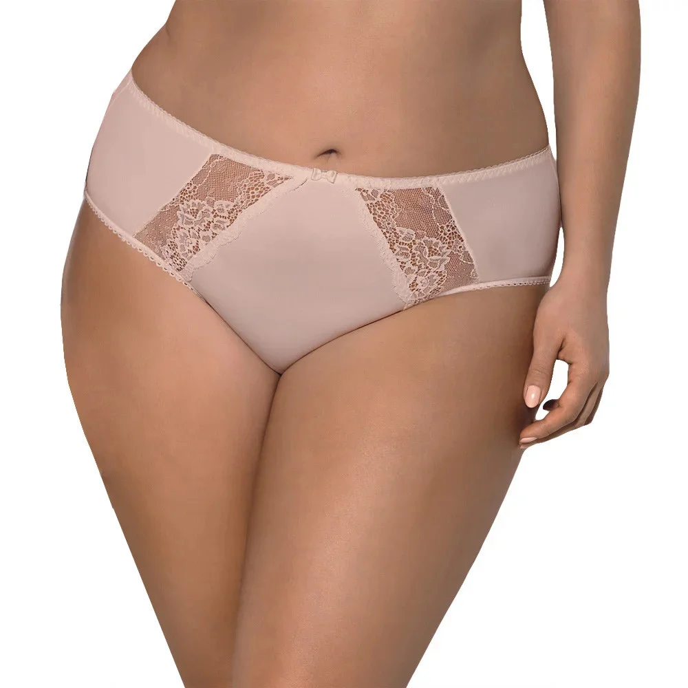 Kalhotky Gorsenia. Model K358 Blanca. Výrobek je vyroben z 90 % z polyamidu, 7 % z elastanu a 3 % z polyesteru. Výrobek pro ženy. Vlastnosti produktu: elegantní klasika s krajkou.