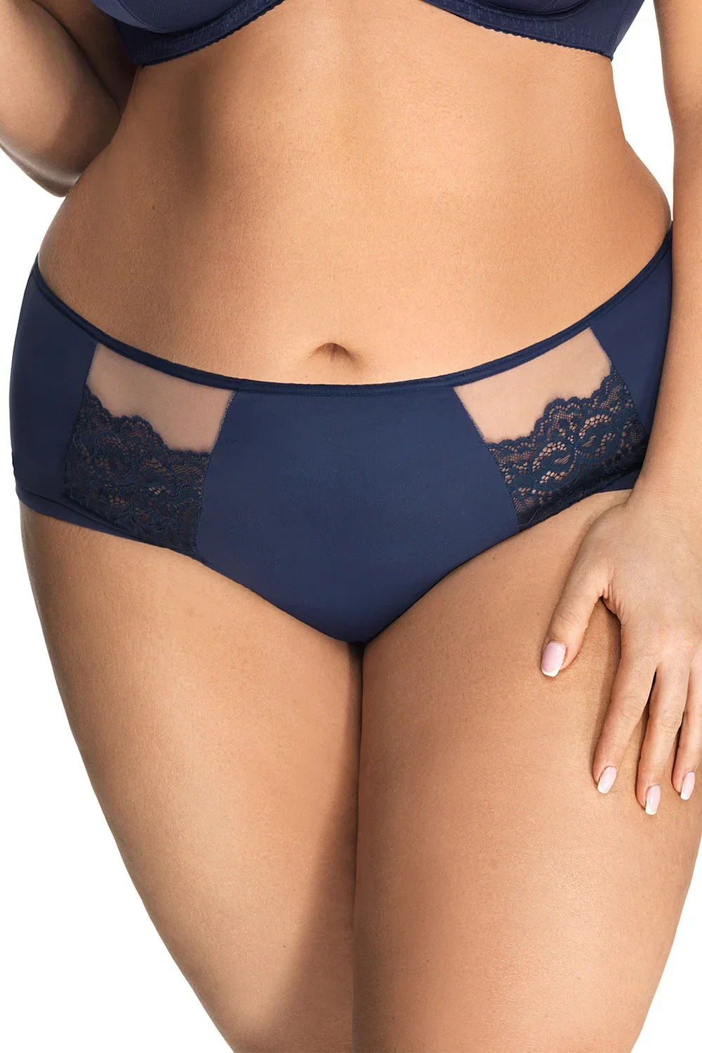 Kalhotky Gorsenia. Model K442 Luisse. Výrobek je vyroben z 90 % z polyamidu, 7 % z elastanu a 3 % z polyesteru. Výrobek pro ženy. Kalhotky vysoko. Výhody produktu: elegantní nude maxi velikost.