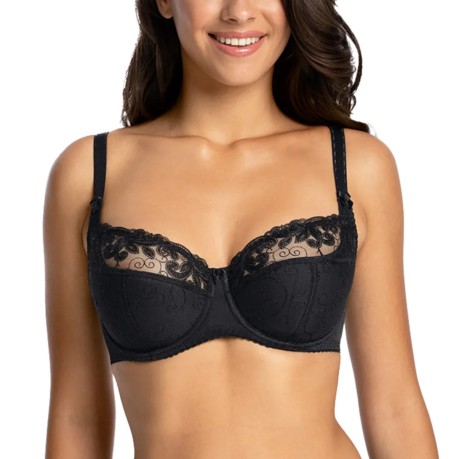 Podprsenka Gaia. Model 899 Goldie. Má dráty, které prsa vhodně tvarují. Výrobek má nastavitelné popruhy bez možnosti odepnutí. Kovové háčky na popruh. Podprsenka se zapínáním na háčky a oči. Upevňovací bod: vzadu. Výrobek je vyroben ze 49 % z polyamidu, 28 % z polyesteru, 14 % z bavlny a 9 % z elastanu. Výrobek pro ženy. Vlastnosti produktu: poloměkká klasika s výšivkou.