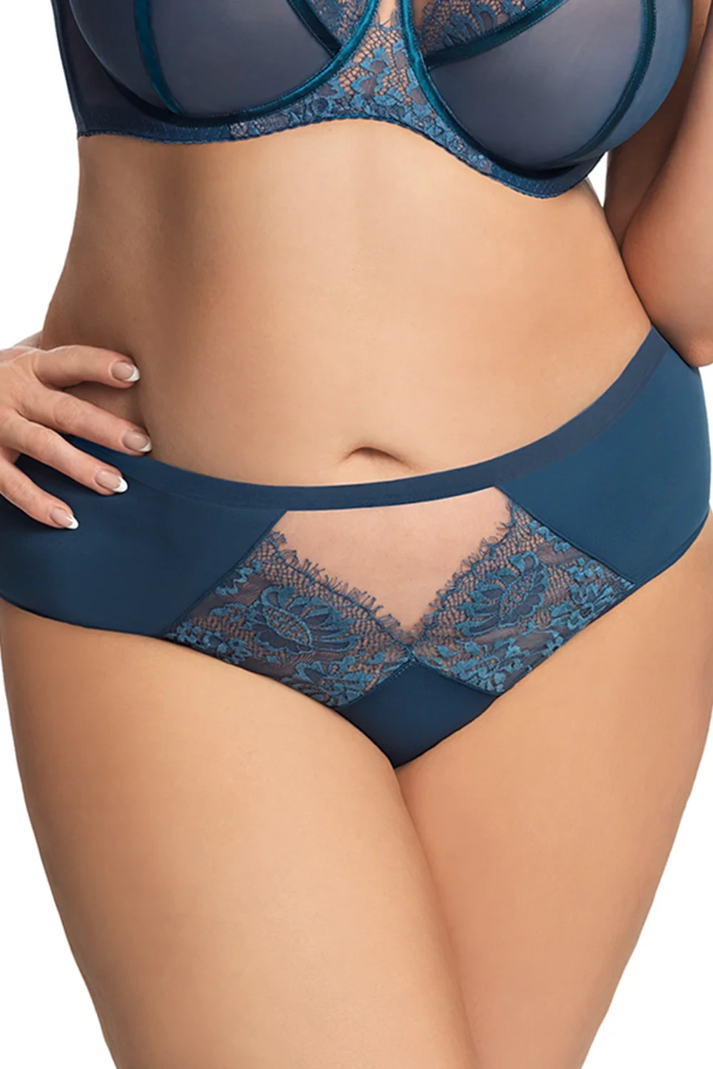 Kalhotky Gorsenia. Model K665 Paradise. Výrobek je vyroben z 90 % z polyamidu, 7 % z elastanu a 3 % z polyesteru. Výrobek pro ženy. Kalhotky vysoko.